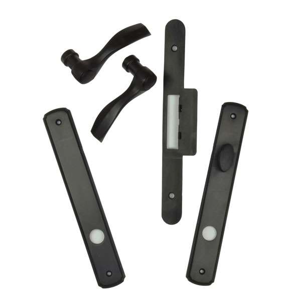 - Set includes inside handles, inside escutcheon plates, limiting plates, gaskets, lock actuator, dummy cylinder, bushing trim adapter, screws and installation instructions.